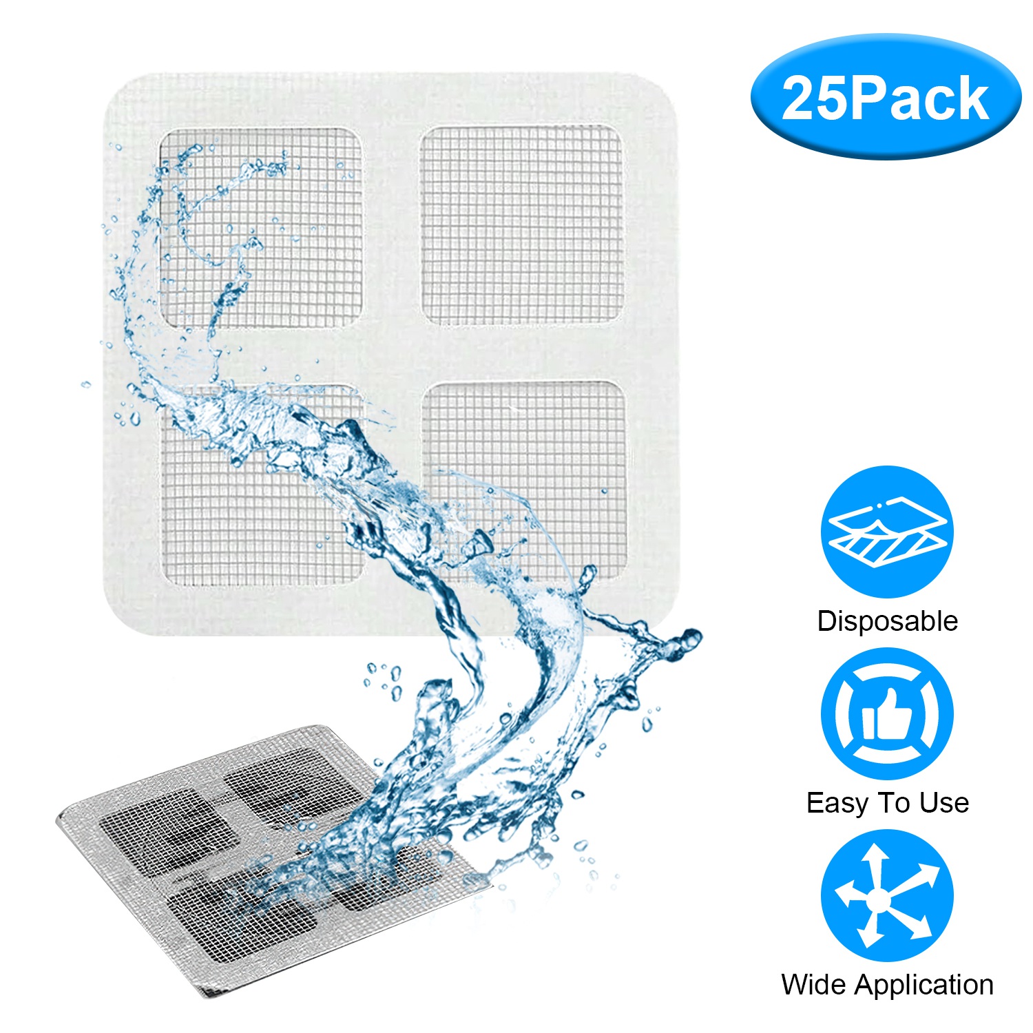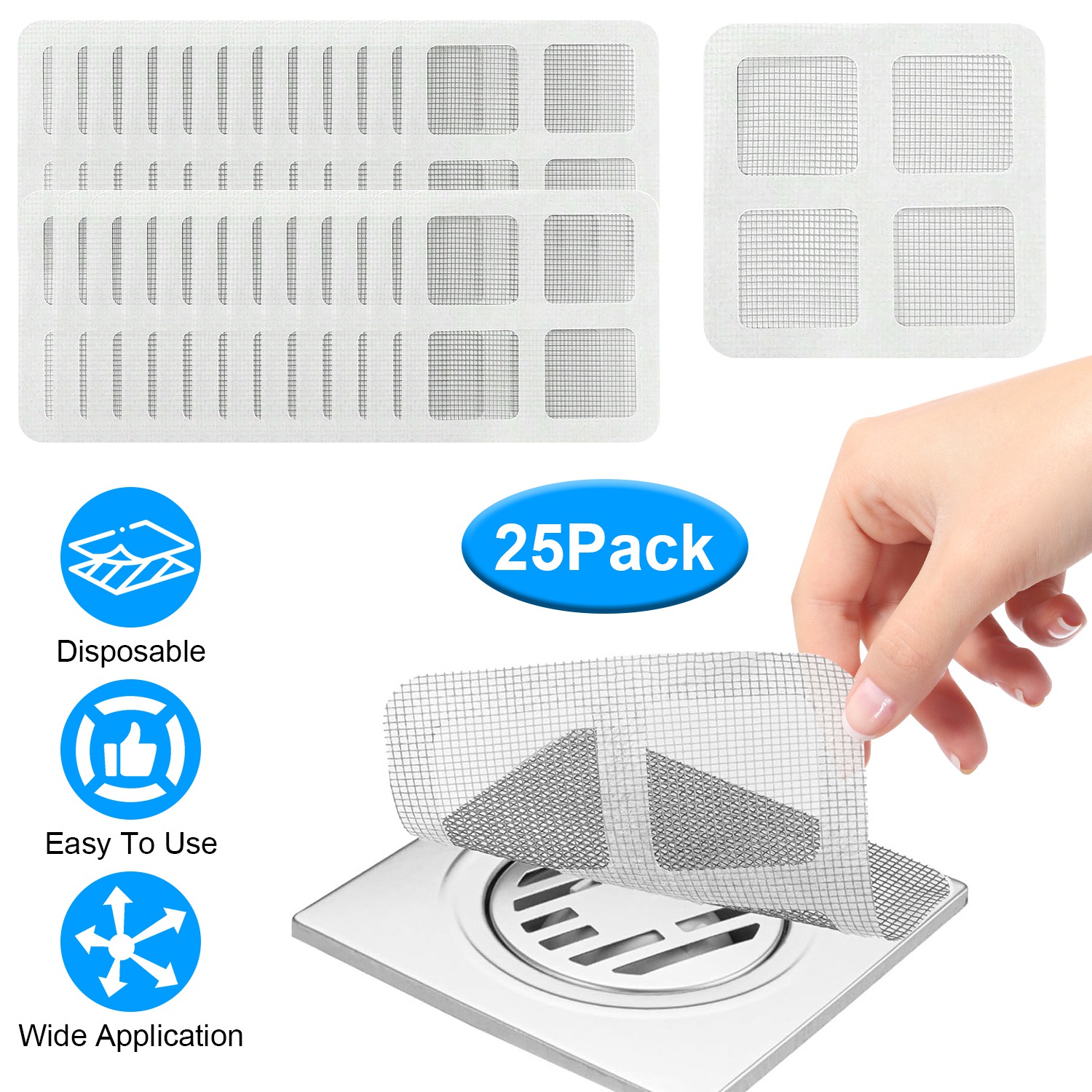 Home > 25Pack 3.94×3.94in Disposable Floor Drain Sticker Shower Drain Hair Catcher Drain Mesh Strainer for Sink Bathtub Laundry Room Bathroom