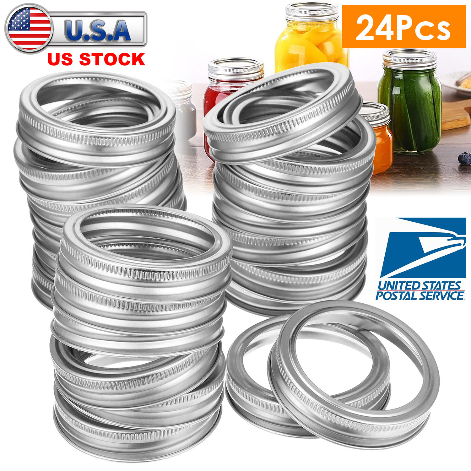 24 Pcs Regular Mouth Canning Jar Metal Rings Split-Type Jar Bands Replacement Fits For Ball Kerr Mason Jars