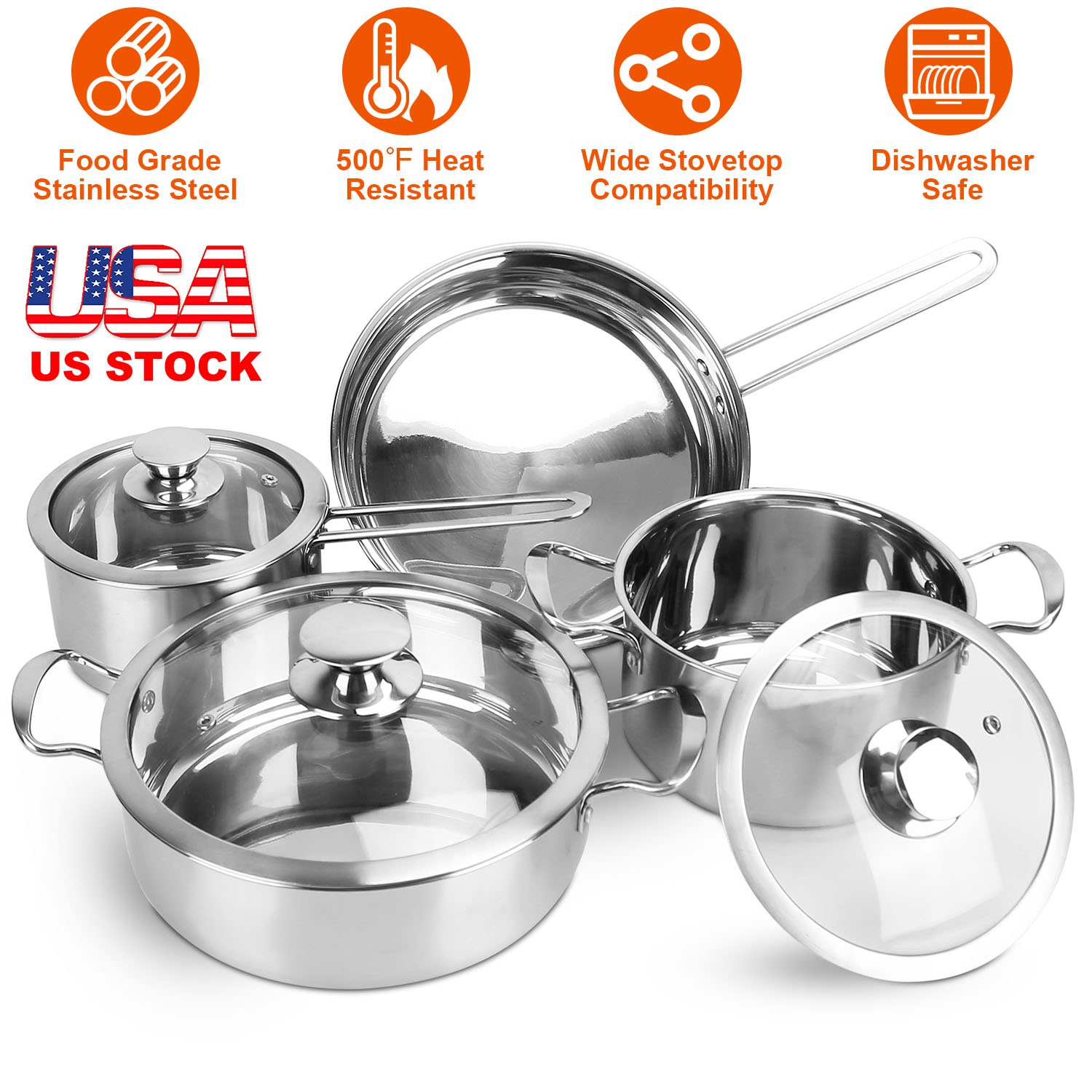 Home > Stainless Steel Cookware Set Fast Even Heat Induction Pots Pans Set Dishwasher Safe with 2.7/3.7 Quart Stockpot 2 Quart Saucepan 9.17in Frying Pan