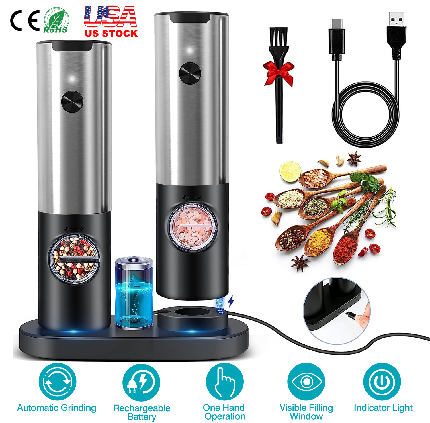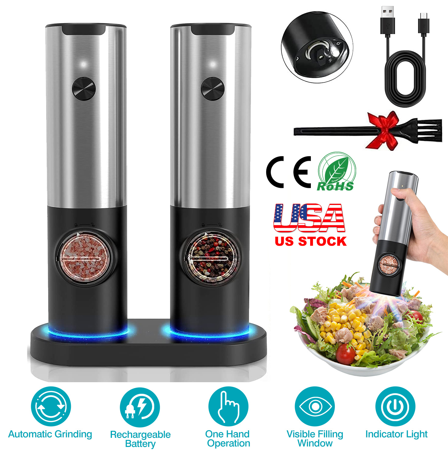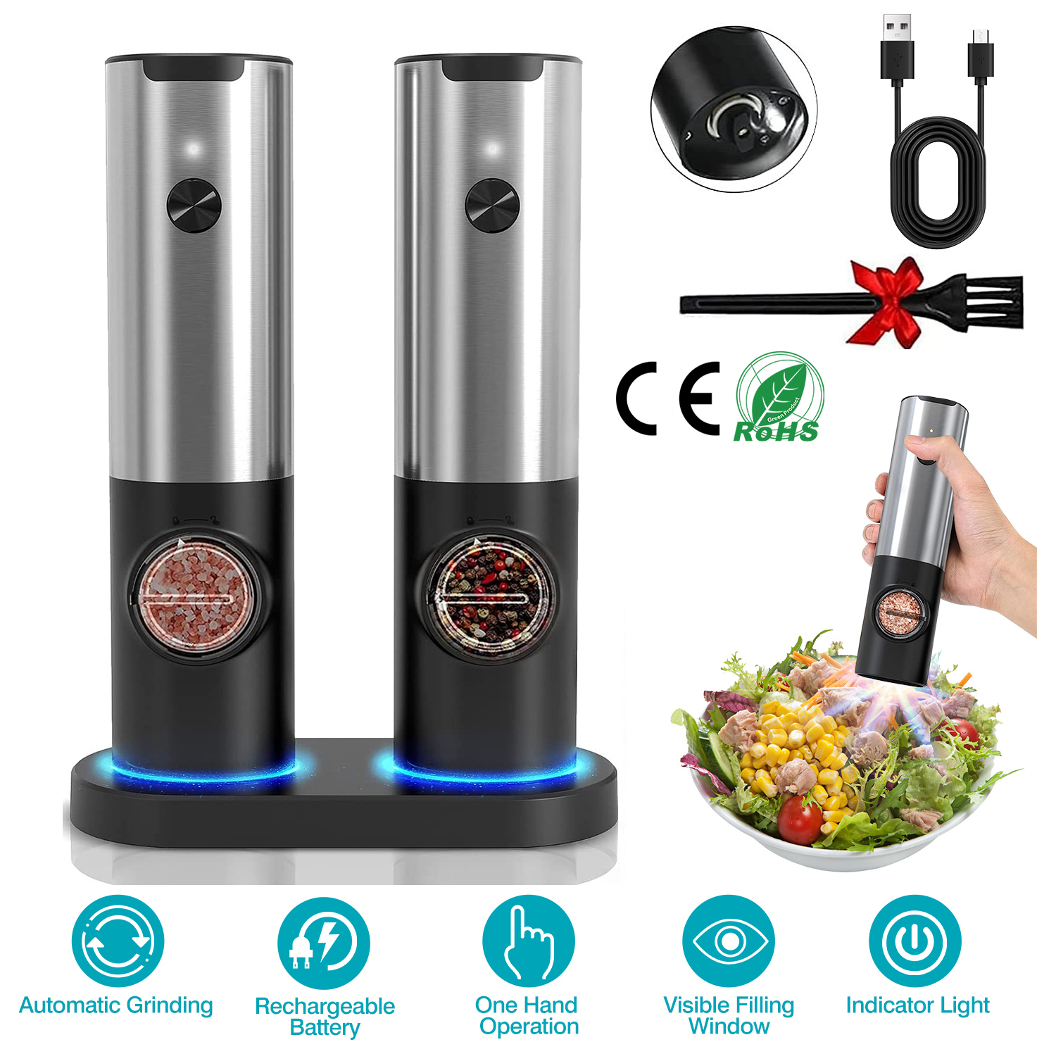 Electric Salt and Pepper Grinder Rechargeable Charging Base Automatic Salt Mill LED Indicator Adjustable Coarseness One Hand Easy Operation Electric Salt and Pepper Grinder Rechargeable Charging Base Automatic Salt Mill LED Indicator Adjustable Coarseness One Hand Easy Operation Electric Salt and Pepper Grinder Rechargeable Charging Base Automatic Salt Mill LED Indicator Adjustable Coarseness One Hand Easy Operation Electric Salt and Pepper Grinder Rechargeable Charging Base Automatic Salt Mill LED Indicator Adjustable Coarseness One Hand Easy Operation Electric Salt and Pepper Grinder Rechargeable Charging Base Automatic Salt Mill LED Indicator Adjustable Coarseness One Hand Easy Operation Electric Salt and Pepper Grinder Rechargeable Charging Base Automatic Salt Mill LED Indicator Adjustable Coarseness One Hand Easy Operation